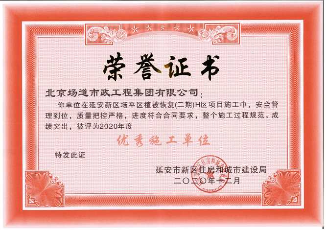 公司项目喜获优秀施工单位荣誉称号 近日,公司承建的延安新区场平区植被恢复(二期)H区项目被延安市新区住房和城市建设局授予“优秀施工单位...