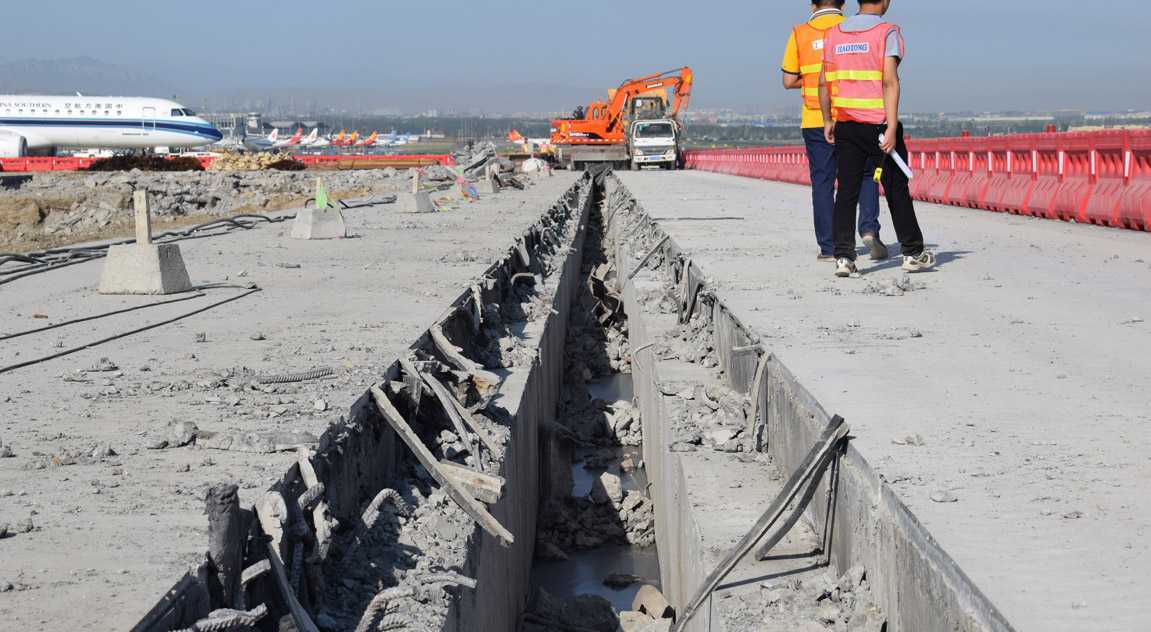 新疆分公司乌鲁木齐机场32-37号机坪维修改造工程,建设地点乌鲁木齐机场,飞行区等级4E。主要工作内容:乌鲁木齐机场南航32-37号机坪道面水泥混凝土拆除,在对基础及土基进行处理后,重新浇筑混凝土道面及道肩,道面混凝土厚度36厘米,道肩面层混凝土厚度12厘米;27-31号7个机位原标记需要清除和重新划设,32-37号7个机位按变化后的机型设计划设;站坪加油管沟地基处理;27-37排水沟改造;部分机坪消火栓井需维修等内容。